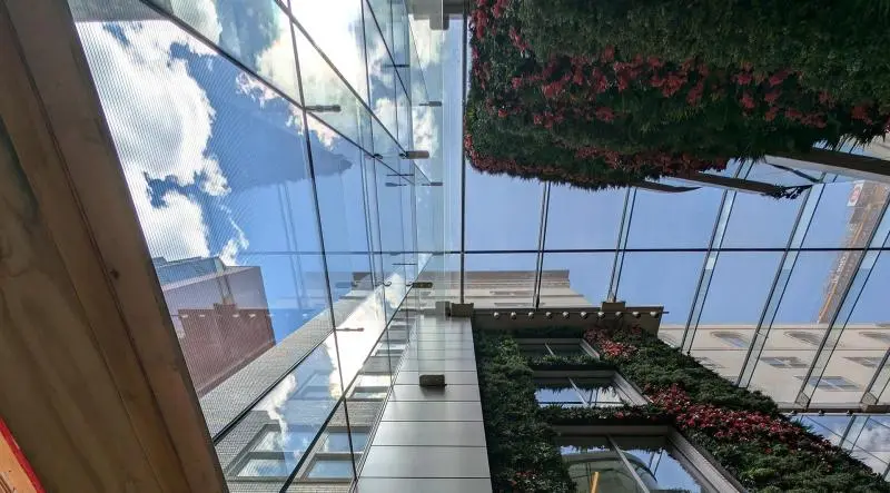 Our new overhead structural glass product offering, VetraSky, offers frameless jumbo clear-span solutions that have never been available to the market before. It is our latest addition to our overhead glazing suite of products. This new, ultra-transparent glass skylight system can span up to 26-feet with single curved glass panels and has no support structure. The elimination of all visible support structure and opaque zones results in sweeping, clean views of the sky with zero interruptions. This innovative skylight system can be used in areas of high environmental loads and uses the glass curvature to develop its strength. For extreme snow loads, curved glass fins can be added to provide additional strength.