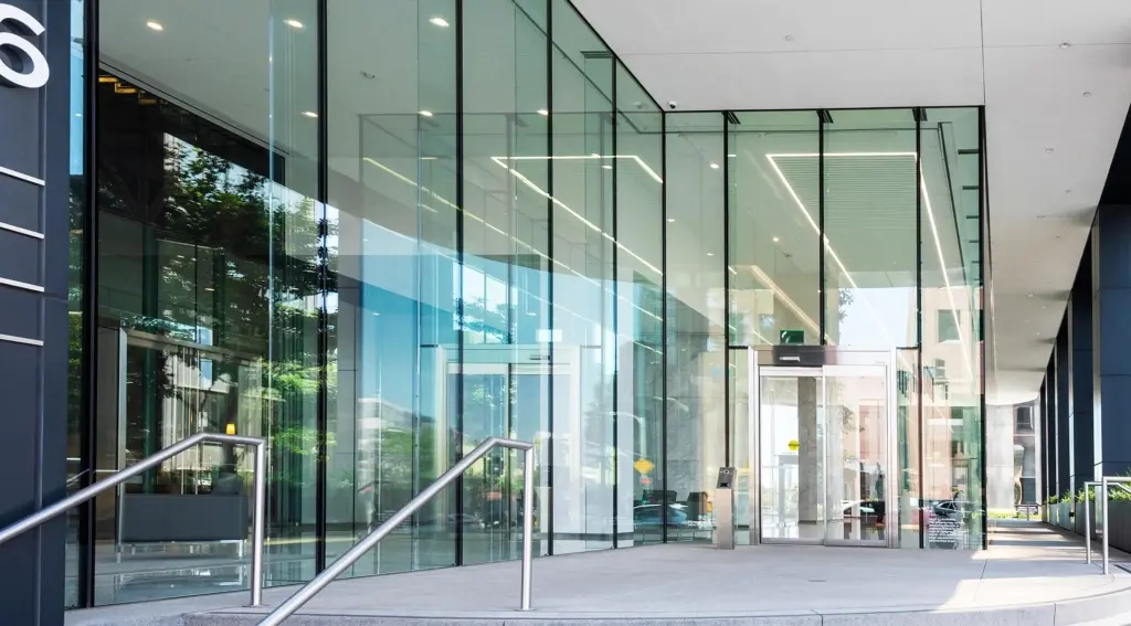 Sentech’s latest project feature is located in the heart of Westwood, at the corner of iconic Wilshire Boulevard and Glendon Avenue. Originally built in 1987, the 16-story tower went through an extensive lobby renovation designed by Gensler in 2023, complete with a striking marble and jumbo structural glass façade. Setting a modern tone that resonates throughout the property, the Class A office building is located directly across the street from the Hammer Museum, and within walking distance of an array of upscale dining, shopping, the renowned Westwood Village and UCLA’s campus. Sentech Architectural Systems designed, engineered and supplied 12 exterior VetraFin-G insulated structural glass walls and 4 interior VetraSpan structural glass walls, totaling over 6,000 square feet of interior and exterior structural glass. Soaring more than 20 feet from sill to head without the use of any vertical support materials, the structural glass façades exude timeless elegance, serving as a connection point for visitors, tenants and the public alike.