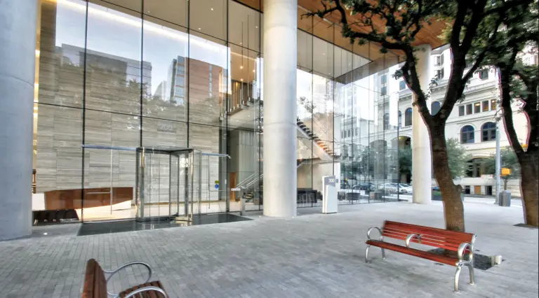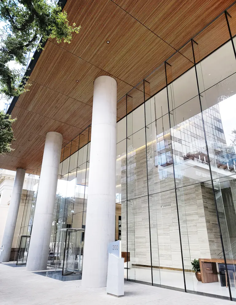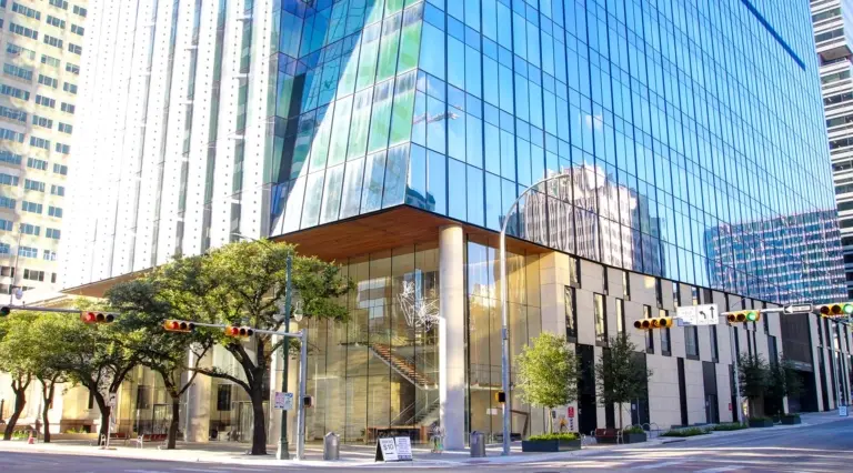 Completed in March of 2021, 200 West Sixth Street- also known as Indeed Tower- covers an entire city block in the heart of downtown Austin. At 36-stories tall, it stands as the tallest and largest office tower in downtown Austin. The strikingly designed tower features a dramatic, sloping façade, a signature architectural crown and soaring, transparent lobby façades that soar up to 39-feet in height. The design sought to incorporate old and new, with special consideration paid to the adjacent historic former post office building.
