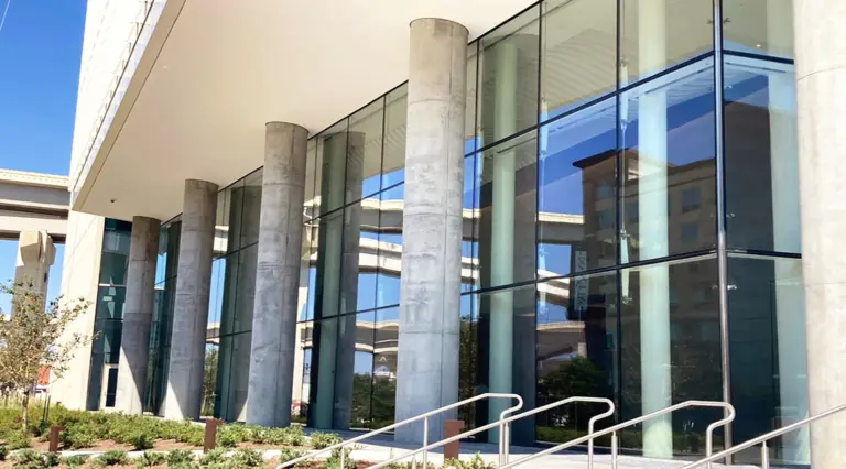 The reinvented and enhanced 2-story lobby features expansive structural glass walls that breathe energy and natural light into the space. The design called for unimpeded views and abundant natural light in an effort to create an accommodating, exclusive and welcoming environment. Sentech’s scope included 9 insulated structural glass walls ranging in heights up to 30 feet, supported by sag rods and horizontal fins, along with embedded point fittings utilizing Sentech’s VetraPoint connection series coupled with Sentech’s VetraFin-H System. In total, the project features over 7,000 square feet of structural glass.