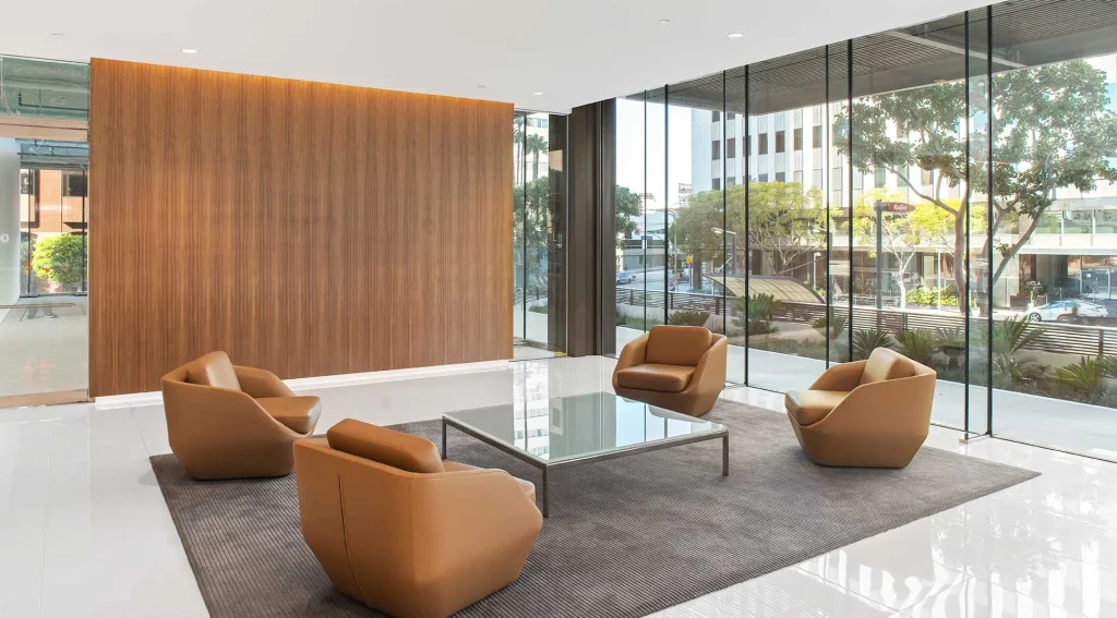 10880 Wilshire Boulevard is a mixed-use office building located at the intersection of Wilshire and Westwood Boulevard in Westwood, California, also known as the “Gateway to Westwood”. Sentech’s 16’ tall glass panels are supported by a full height fin, providing stellar daylighting for the lobby space. The façade is seismically isolated and acts as a large diaphragm to accommodate inter-story drift deformation under seismic loads. The optical quality of the glass and precise installation tolerances were key to the project success and the stunning façade transparency.
