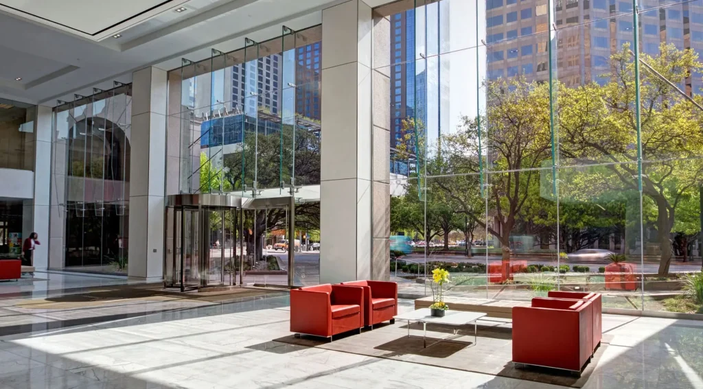 Boston University’s LEED Silver certified Joan & Edgar Booth Theatre is a design tour de force, and one of the top dynamic performance venues in the Boston area. The central inspiration for the design of the renowned theatre and its stunning glass façade was derived from a well-known quote from Shakespeare’s Hamlet: “To hold as ‘twere the mirror up to nature”. The artistic contemplation of theatre as tool a mirror to society influenced the design of the theatre’s spectacular, shimmering 42-foot glass façade that elevates BU’s presence on Commonwealth Avenue. Soaring 40-feet high and 112-feet in width, the striking façade utilizes Sentech’s VetraPatch Connection Series and VetraFin G-Series System and slants toward the street at a 14-degree angle, enclosing the 3-story high lobby. Reflecting back on Boston pedestrians and visitors alike, Booth Theatre’s elegant structural glass wall reaches out and invites the city into the award-winning cultural center, striking a glorious harmony between theatre and the society it mirrors.