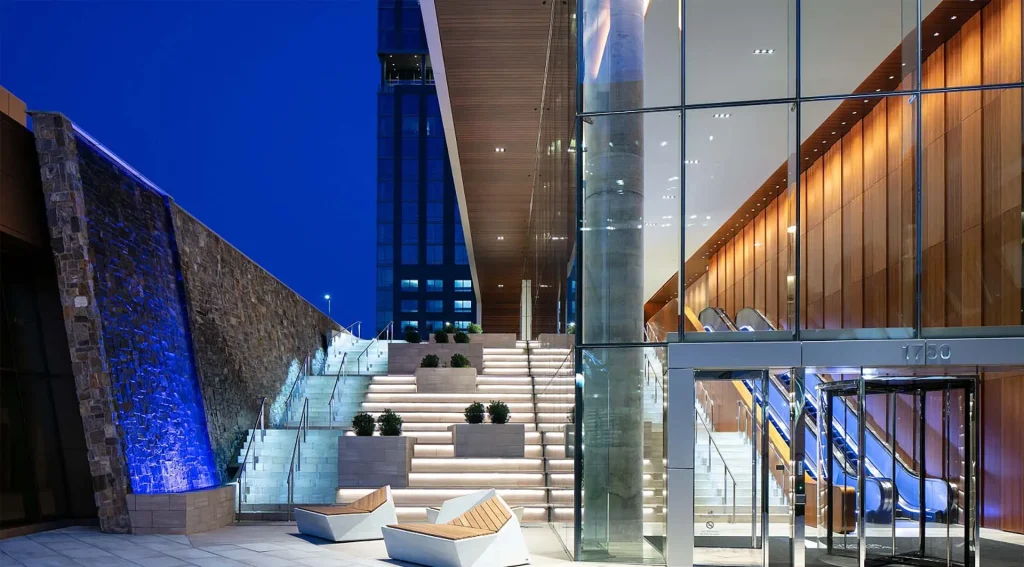 Completed in 2022, Tysons Central Building A – the gateway to the “Tysons of Tomorrow” – is a 20-story, next-generation, world-class development located just off the Greensboro Metro Station in the heart of Tysons, Virginia. Gensler designed the 388,000 Square-foot mixed-use building, featuring 12 stories of next-generation office space, 19,000 feet of retail space, and eight levels of above-grade parking. Sustainability, openness, and the health and safety of occupants were key criteria in the building design, and the state-of-the-art building is both LEED Gold Certified and WELL Health-Safety rated. Tysons Central was meticulously planned to identify and provide what tenants seek in a modern workplace- one that enhances daily life in a first-class setting through world-class design, on-site amenities and modern efficiencies.