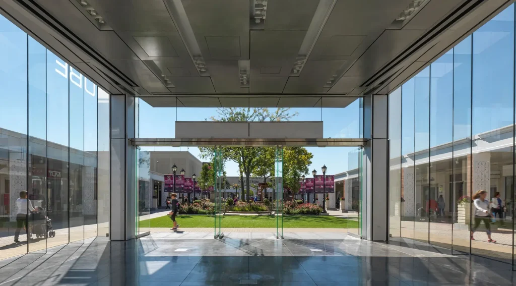 An open-air, upscale shopping center in Skokie, Illinois, Westfield Old Orchard Mall is the third largest mall by total square footage in Illinois. With the aim of creating a minimalist statement structure that could be utilized in both cold and warm weather months, this completely transparent, freestanding 1,300 square-foot glass pavilion was designed as an innovative space for product launches, exhibitions and as a backdrop for the summer concert series. Sitting at the intersection of three main promenades, the glass cube features 20-foot tall glass fins utilizing Sentech’s VetraFin G-Series System. To meet the design mandate of complete transparency, the structural system was made nearly invisible. The structure is supported on just four steel columns, inset at each corner, with stainless steel plates embedded into the fins at the roof to support the roof glass and transfer the façade loads to the main structure. The oversized, low-iron, anti-reflective glass panels were laminated with an interlayer for added strength while bearing on an embedded channel at the base, and are supported by structural fins joined to the panels with structural silicone. The bespoke connections and seamless, strategic structural design result in a minimalist elegance that opens the space to the outdoors while acting as both destination and gateway.